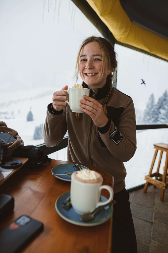 You spend the day gliding down the snow-covered mountains, feeling the cold wind rush past you and the adrenaline pumping through your veins. After a few hours, you take a break at a rustic mountain hut, savoring a hot drink and some hearty Austrian food.
